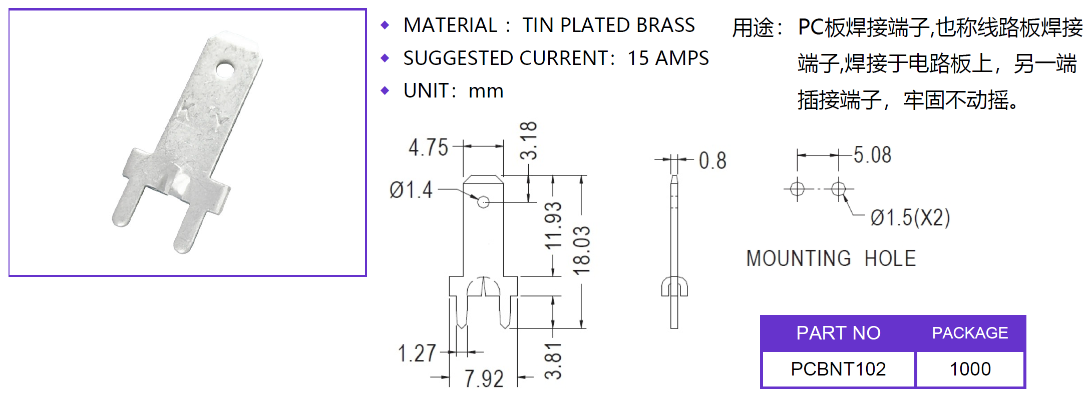焊接于電路板上,另一端插接端子,牢固不動(dòng)搖。